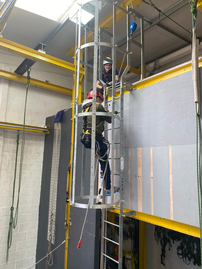 The practical training covers pre-use checking of equipment and the correct use of lanyards whilst working at height either within a basket, cradle or on scaffolding.