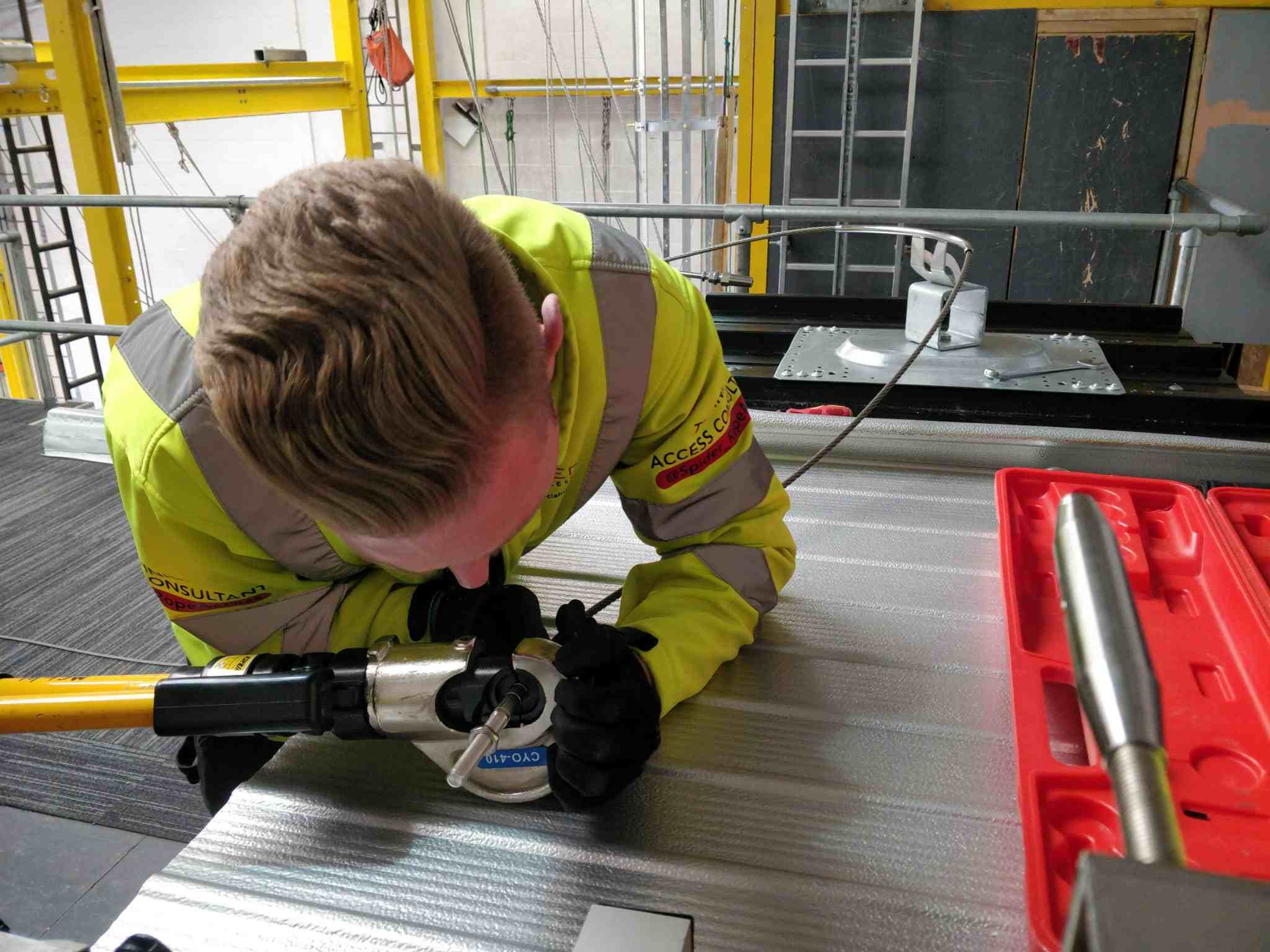 Once the students have completed the theoretical side of the course, they are then assessed on practically installing a flexible & rigid horizontal lifeline on a variety of substrates. This includes trapezoidal, standing seam, membrane roofs (tray liner and concrete deck), swaging cable and testing with Hydrajaws.