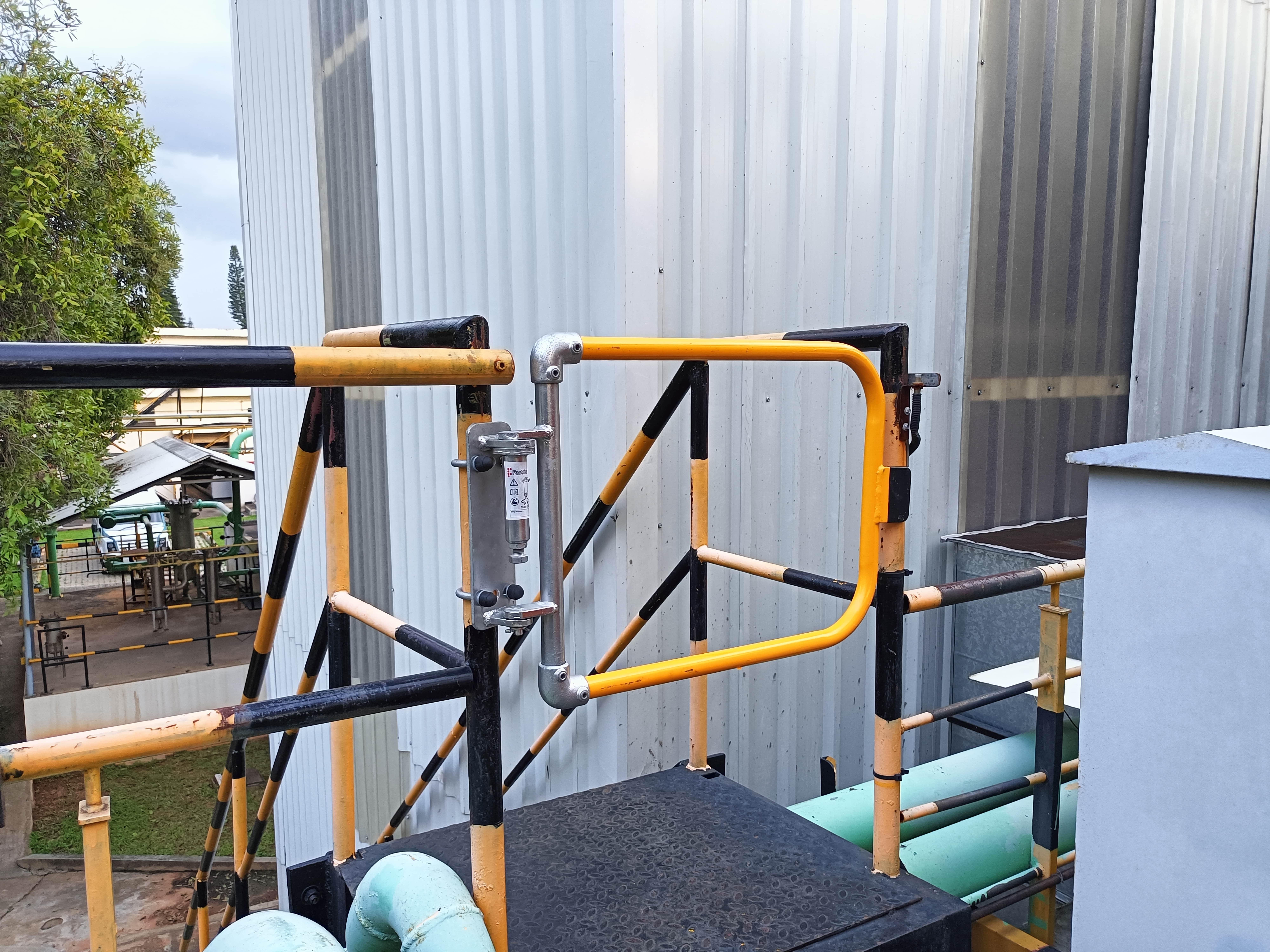 单幅门的标准宽度为 1 米,可在现场轻松切割成合适的尺寸。可逆铰链可安装在敞口的左侧或右侧,使安装更加简便灵活。弹簧折页铰链机构确保安全门在人员通过后始终关闭,为高空作业人员提供有效的安全防护。