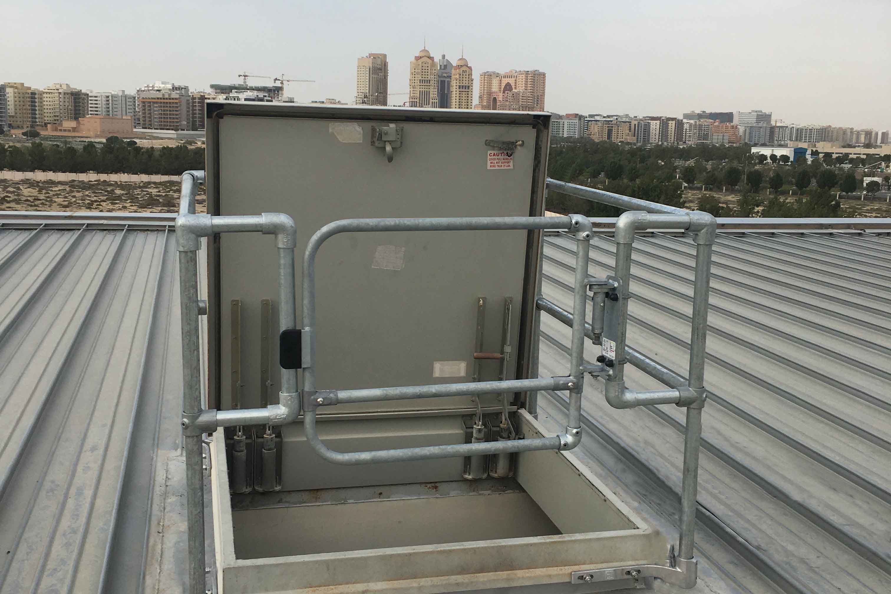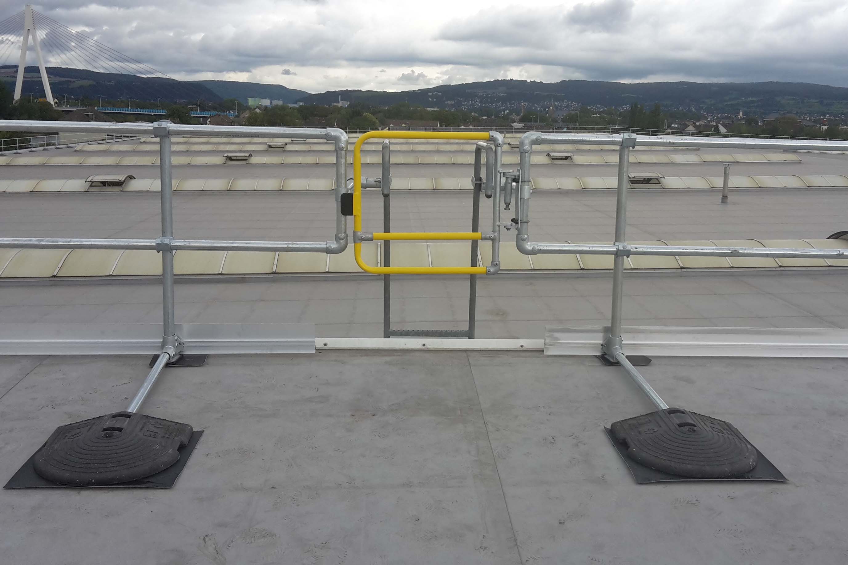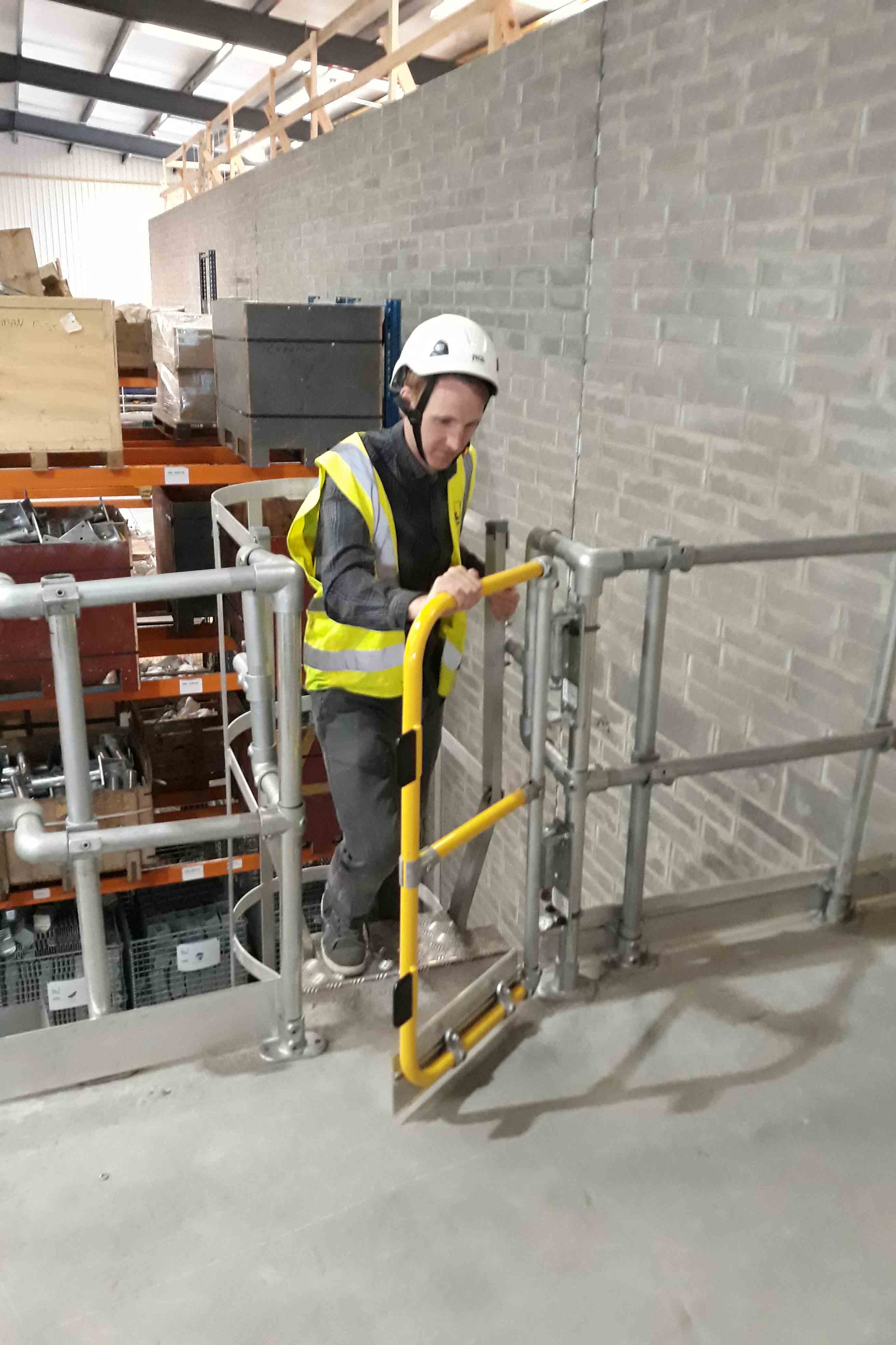 Diese Tür verfügt über eine Breite von 1 m und kann vor Ort einfach angepasst werden. Die umkehrbaren Scharniere können auf der linken oder rechten Seite der Öffnung angebracht werden und sorgen damit für eine einfache und flexible Installation. Der federbelastete Scharniermechanismus stellt sicher, dass die Tür sich stets von selbst schließt und Personen bei Arbeiten in der Höhe zuverlässig schützt.