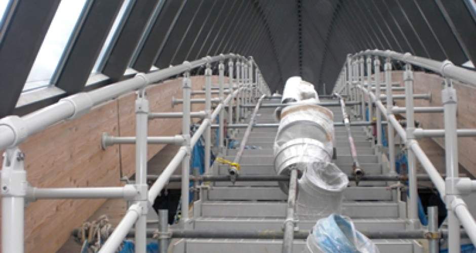 Im Dachfirst der Harlow Gateway Freizeitanlage wurden über 160 Meter KEE LITE Sicherheitsgeländer aus Aluminium installiert. Das Geländer ermöglicht den Angestellten einen sicheren Zugang für Wartungsarbeiten in der Glasdachkonstruktion.