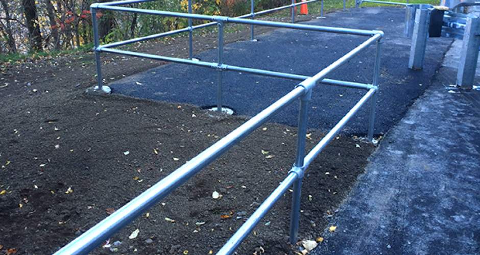 Entlang der Gehwege wurden Kee Klamp Geländer installiert.
