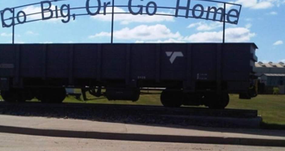Um Malerarbeiten auf den Eisenbahnwagen zu verrichten, müssen die Angestellten in der Höhe arbeiten.