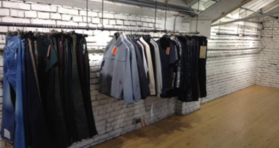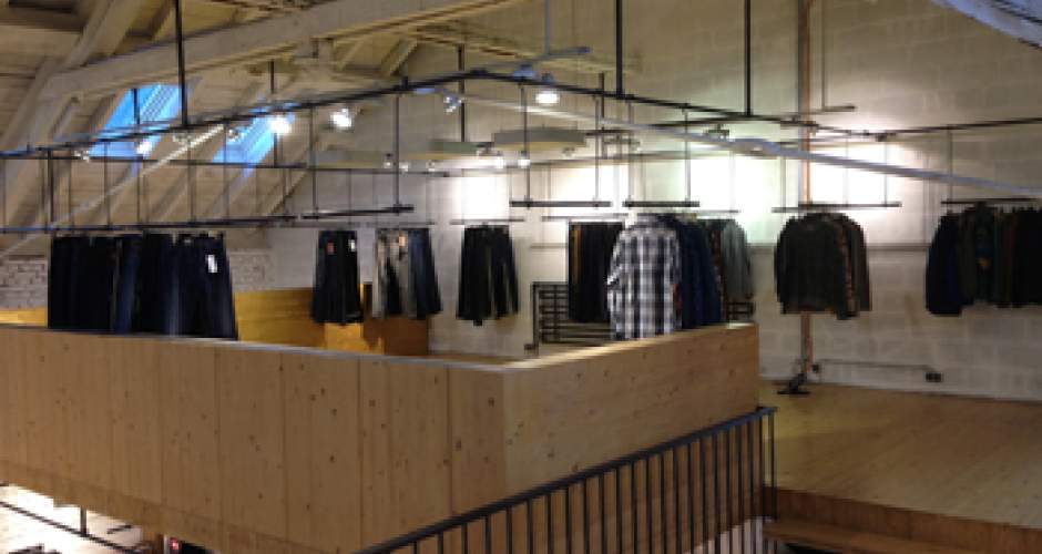 Unsere Kee Klamp® Rohrverbinder können flexibel eingesetzt werden. Das hat Levi Strauss für sich genutzt und die Rohrverbinder als Stangensystem in ihrem Showroom in Salzburg eingesetzt.