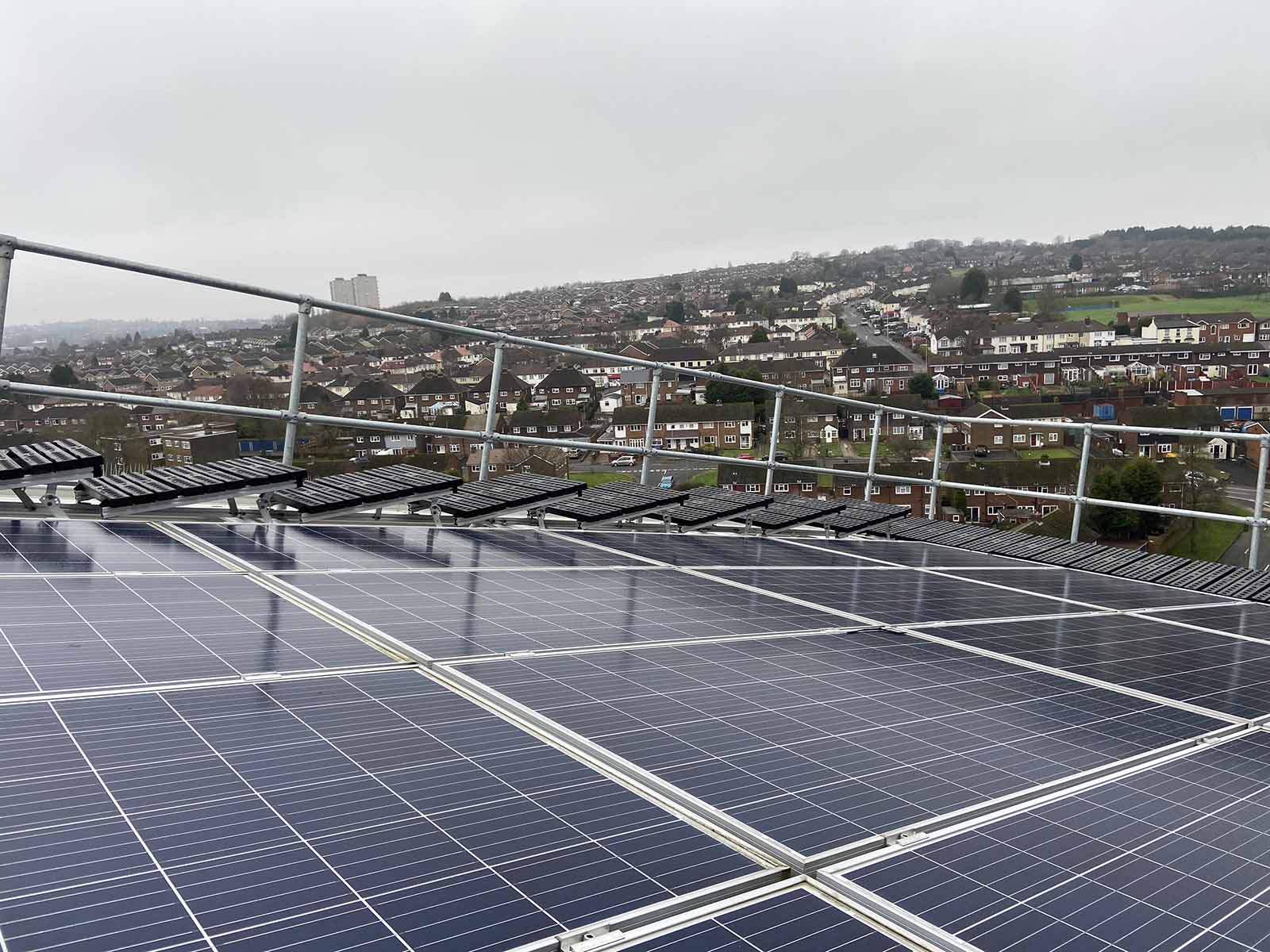 On roofs with limited space it is still possible to install freestanding edge protection. We offer a system that does not require counterweights along the full run of the system. It provides the ideal solution for roofs with limited space such as those where solar panels have been installed.