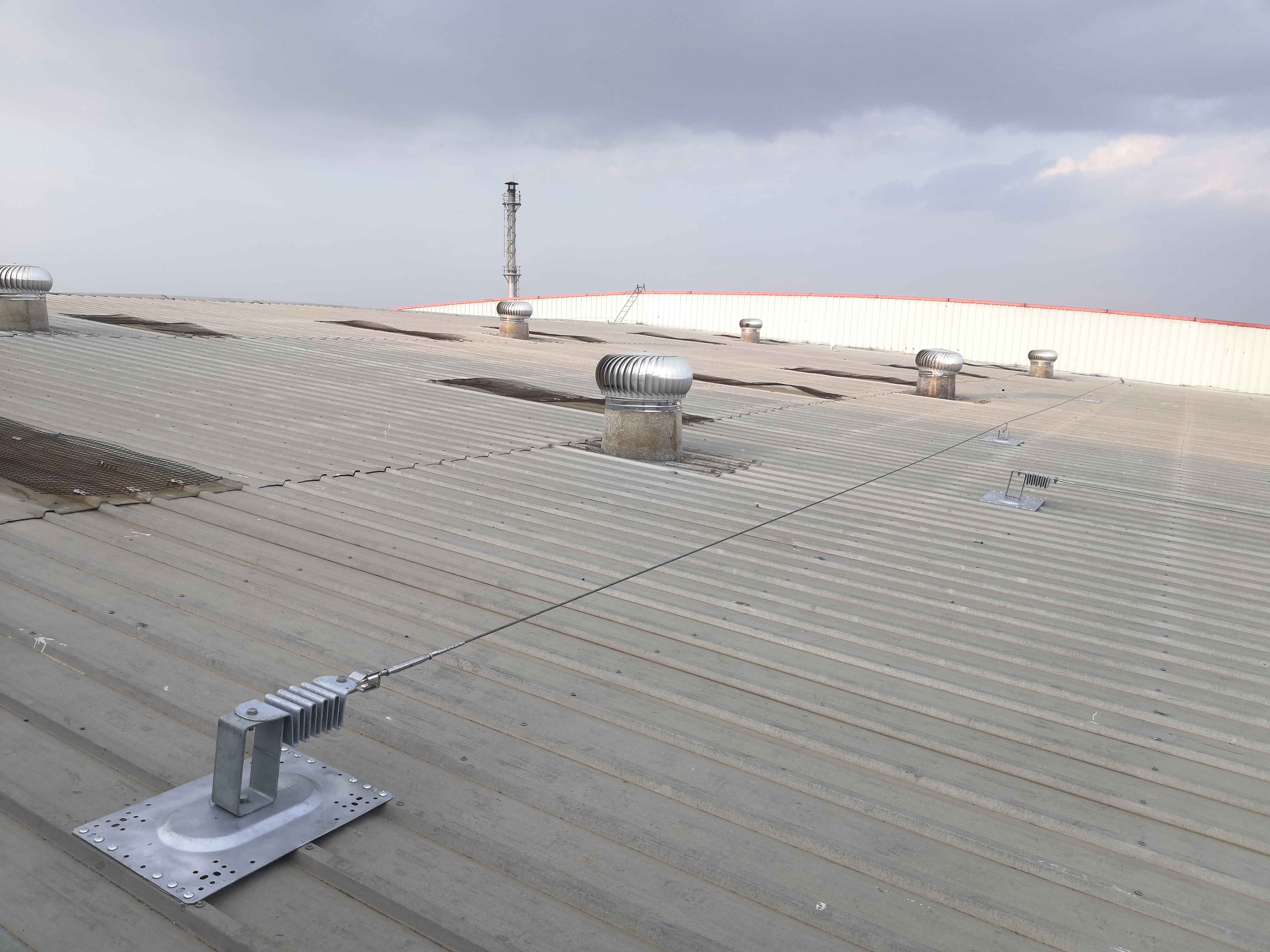 Kee Line® Wireanka can create a permanent lifeline on a rooftop without the need to penetrate the roof structure. Each of the wire posts is connected to a weighted structure that keeps the user secure in the event of a fall.