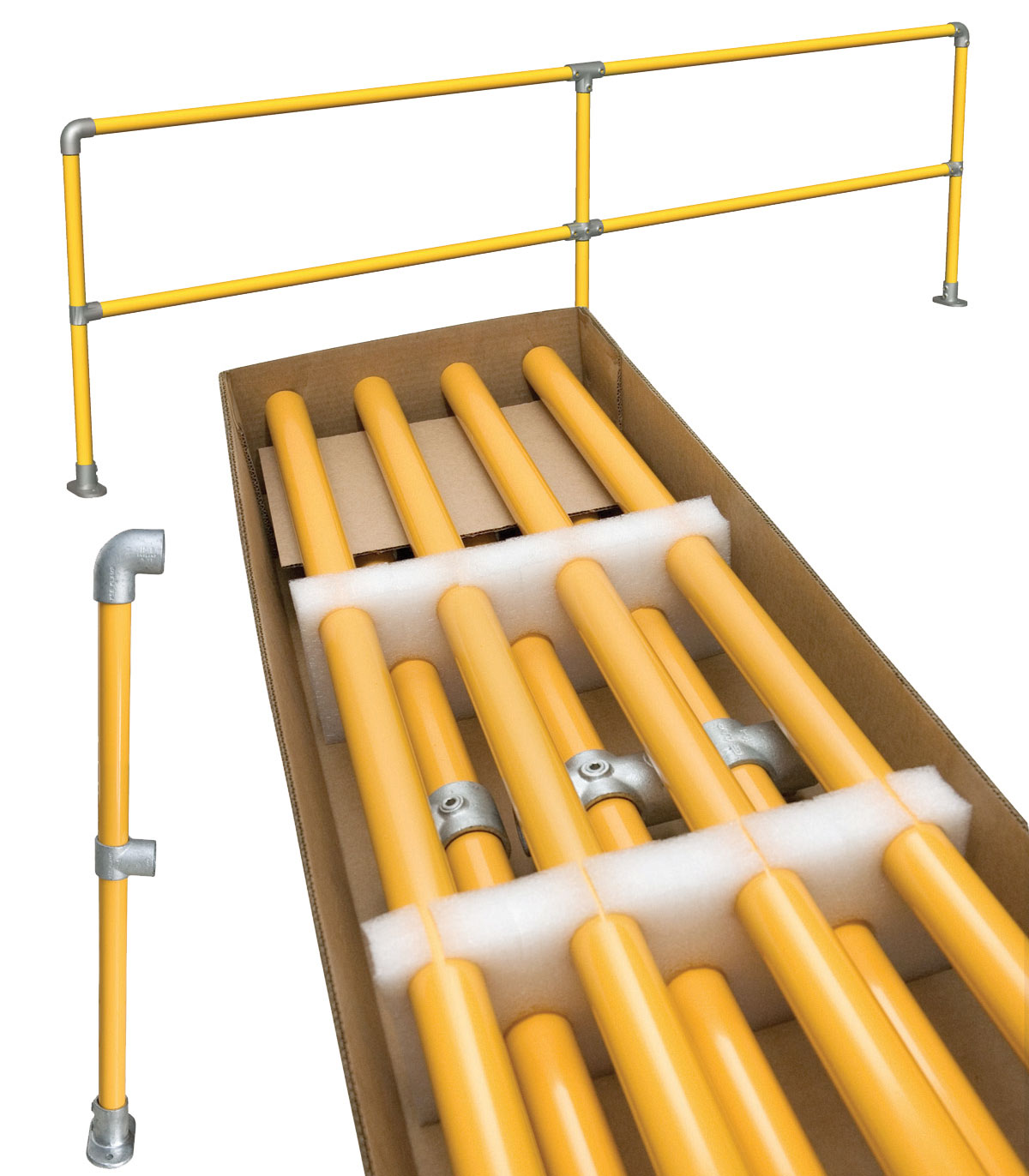 Kee Kwik Straight Kit is a straight section of 48.3mm diameter galvanised steel or aluminium handrailing 3000mm long, with three uprights and flat fix baseplates. You can extend the length of this railing through the use of an extension kit.