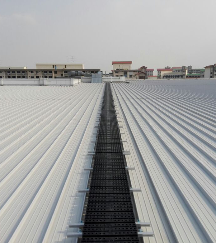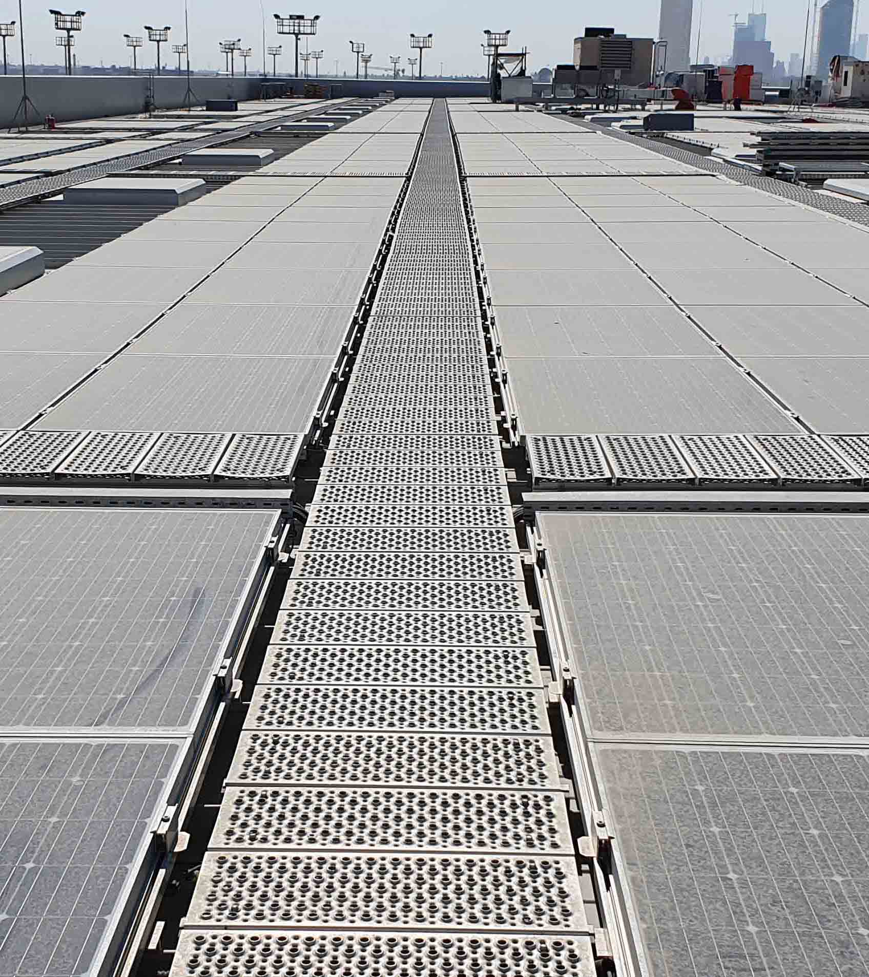 This flexible walkway system can be adapted for roof angles from 0 to 35 degrees and can be adjusted on site.